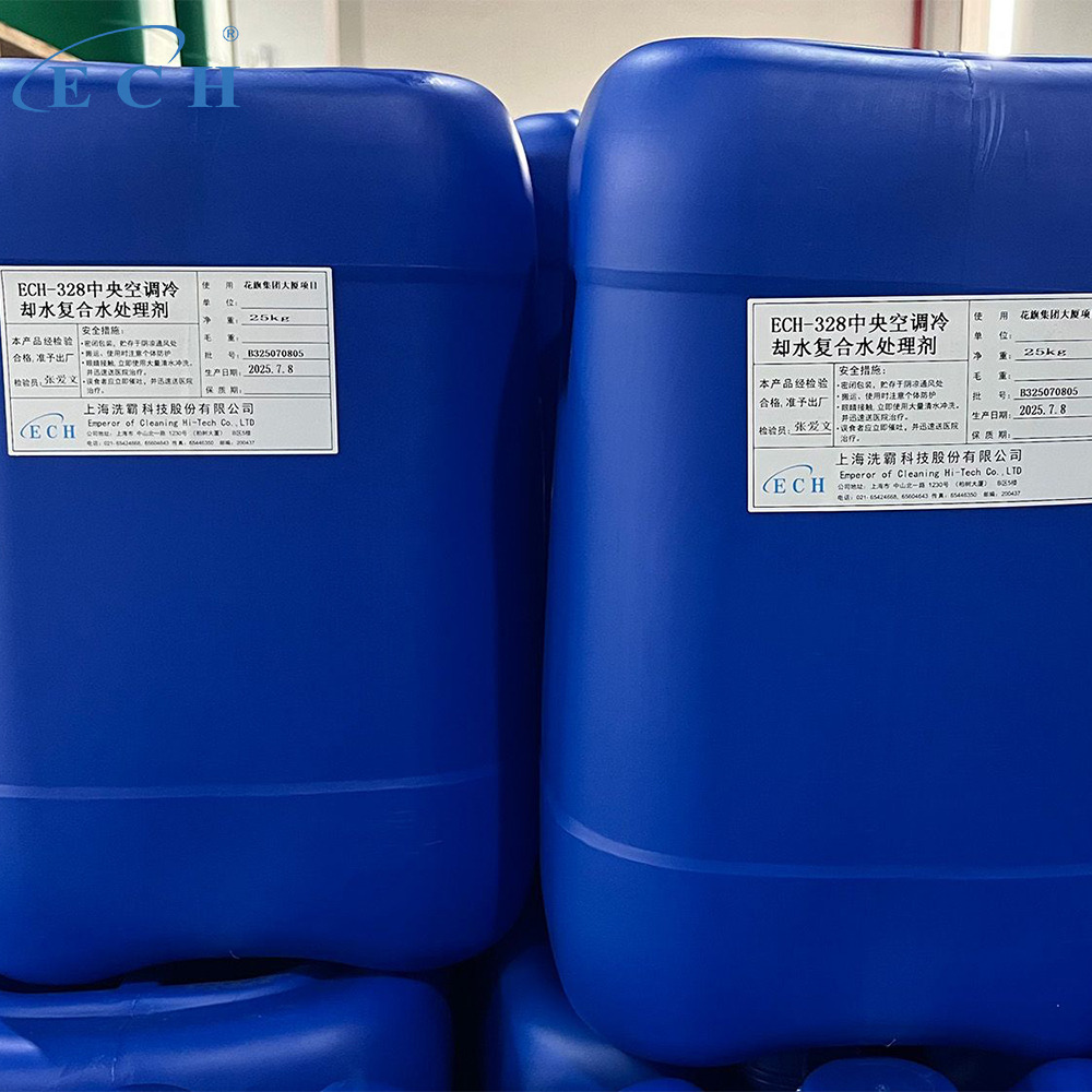 ECH-328 is a highly concentrated composite water treatment chemical specifically developed for central air conditioning cooling water systems. Primarily composed of polyepoxysuccinic acid (PESA), it is biodegradable, non-toxic, and free from hazardous discharge, fully complying with the standards of a green water treatment formula. This versatile agent also serves as an efficient scale and corrosion inhibitor for industrial circulating cooling water systems, demonstrating excellent performance in high-hardness and high-alkalinity water environments while maintaining good compatibility with common biocides.