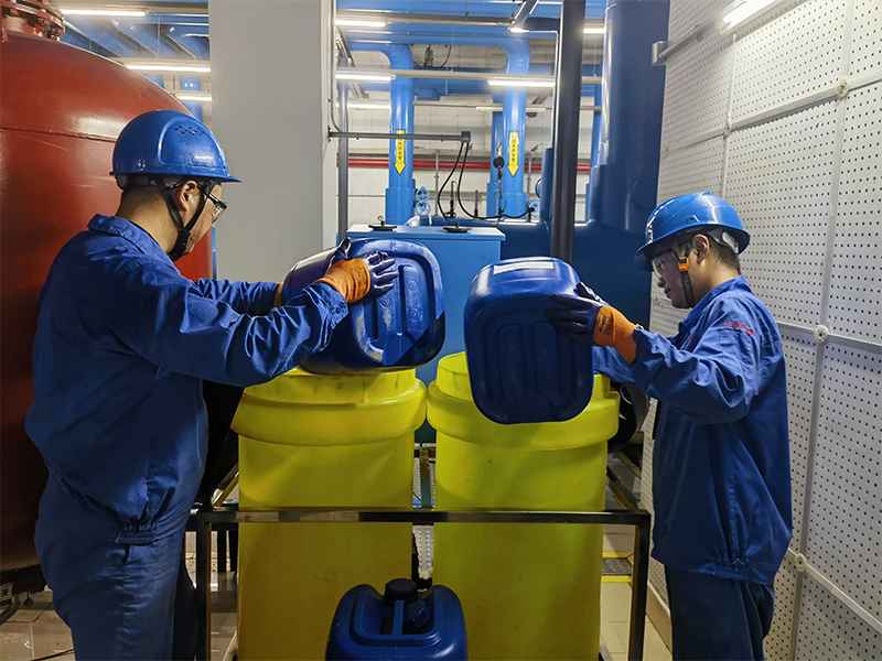 Our team of skilled service engineers utilizes advanced water quality testing instruments to provide comprehensive water treatment services, training, and consultation. The chemical cleaning process involves maintaining the normal water level of the operating system and introducing chelating agents and efficient activators into the circulating water. These agents interact with oils, scales, and rust layers, causing strong molecular vibrations that break down the crystalline structure of the contaminants, making them soluble and easy to remove.