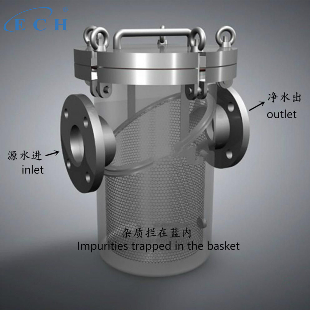 The filter housing is constructed from high-grade stainless steel, which provides exceptional resistance to corrosion, erosion, and mechanical impact, ensuring long service life. Its uniquely designed perforated basket efficiently captures hair, fibers, and large debris, while the streamlined inlet and outlet ensure minimal pressure loss during operation. The filter is easy to install, clean, and maintain, with a filtration precision that can effectively intercept impurities larger than 1-2mm, protecting downstream pumps, finer filters, and other equipment from clogging and damage.
